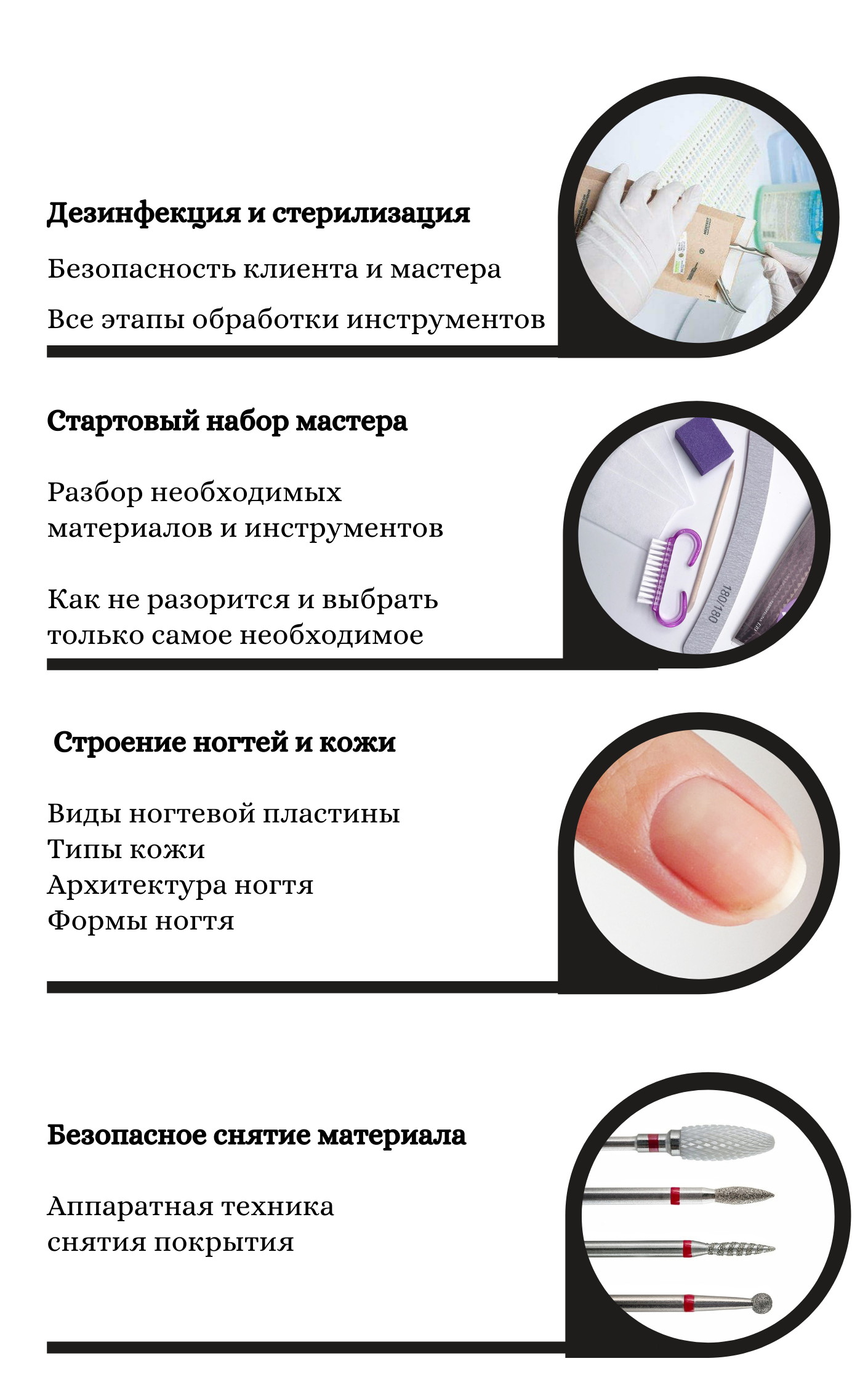 Программа создана для новичков в ногтевой сфере и всех, кто хочет освоить профессию мастера маникюра и развиваться в этом направлении.